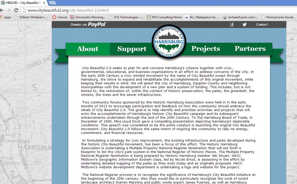 I selected City Beautiful as a viable digital initiative for two reasons. First, the movement in Harrisburg is historically significant because it was one of the earliest city beautiful programs in the nation and garnered widespread popular support. Second, the topic is relevant to current conversations about improving Harrisburg. Last year, a group of citizens in Harrisburg launched City Beautiful 2.0, a collaborative grass-roots movement “to address concerns of the city” by reclaiming the spirit and foundations of the original City Beautiful movement. Mayor Papenfuse even made the promotion of City Beautiful 2.0 a short-term agenda item in his recent transition report.