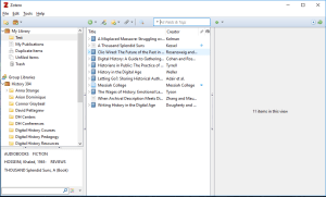 Within three days, I have learned that there is much more efficient software out there for researchers to use as they organize and develop their ideas. One of the main software programs is Zotero. Zotero is “a free, easy-to-use tool to help you collect, organize, cite, and share your research sources.” It automatically saves information, so it makes doing citations easier. Zotero also allows users to export parts of their research collection to other users. Therefore, sharing and collaboration become easier between historians. Research becomes so much more refined and developed as historians collaborate. Cohen, a well-respected historian, notes that Zotero opens up new possibilities for scholarly communication.