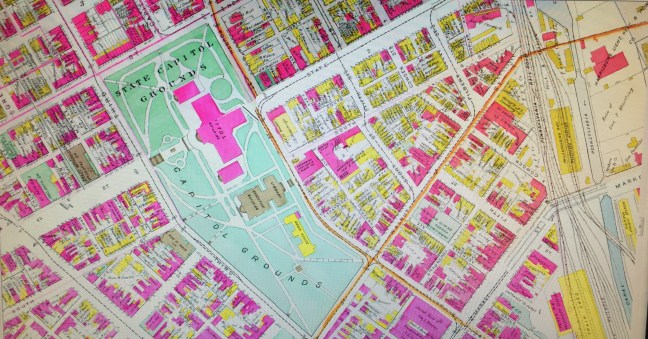 So it is with Harrisburg before and after the City Beautiful movement. Many changes were made, which were usually viewed as improvements. The other side of the coin, though, is what those “improvements” replaced. A prime example is the Capitol complex. The Capitol was destroyed by fire in 1897 and was rebuilt as a large complex in 1919. This seems to be all good so far, correct? Well, if you look at a map of the area around the Capitol before the reconstruction of the building and after the reconstruction, you can see what was destroyed. A whole neighborhood named the Eighth Ward was demolished at the cost of rebuilding and expanding the Capitol. Beers writes about this in City Contented, City Discontented, explaining that 598 buildings were razed to make space for the complex.