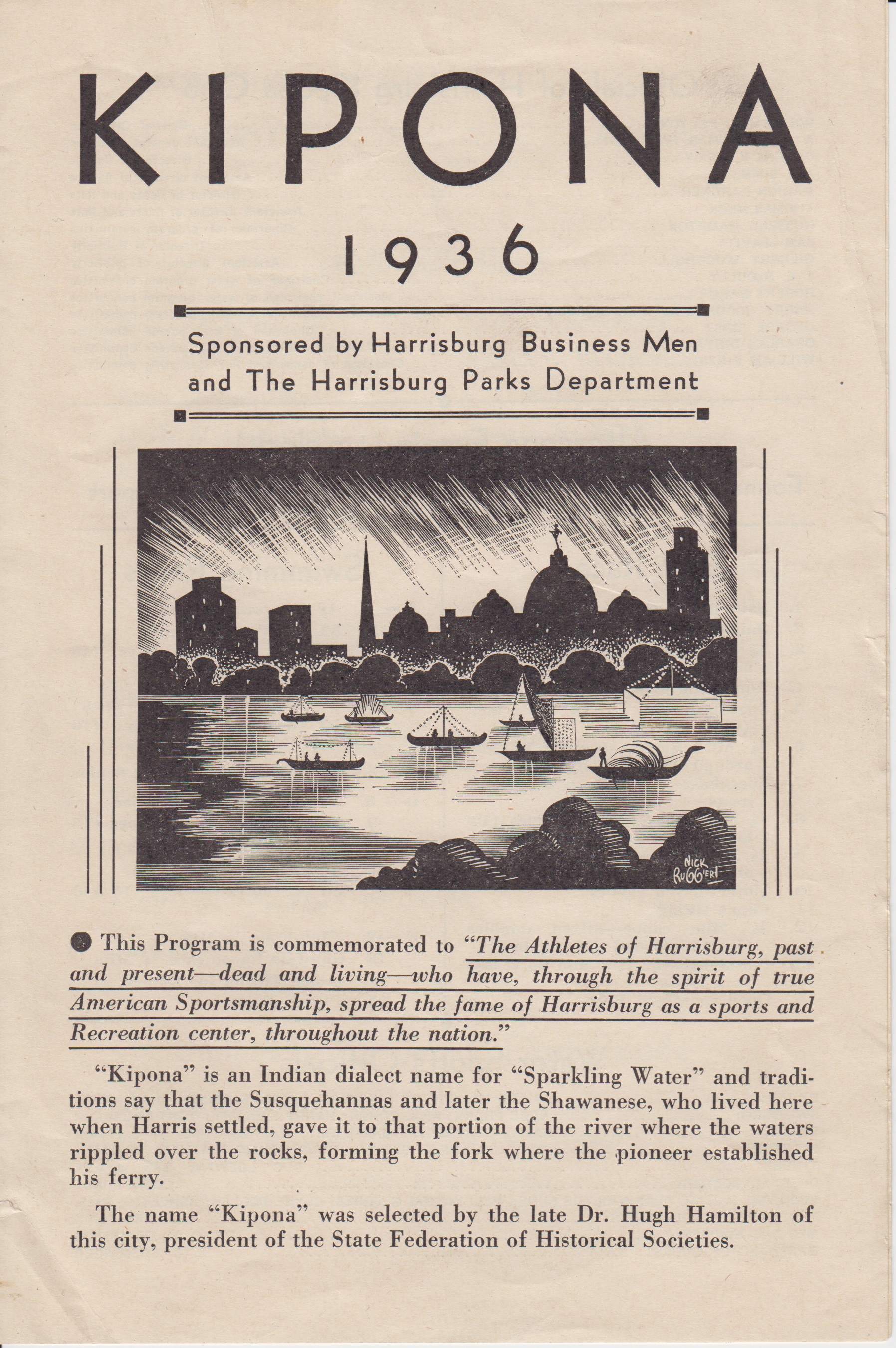 One of my goals for this project was to demonstrate that the Kipona Festival was a local endeavor and that it was revived to increase local pride in Harrisburg. On the pamphlet of the 1936 Kipona Festival that I discovered at the Historical Society of Dauphin County was a list of sponsors for the festival. While the parks service was