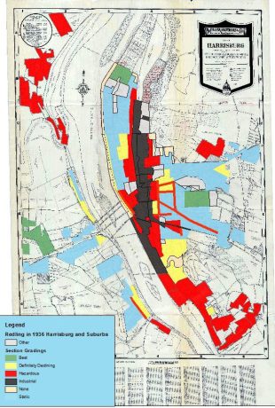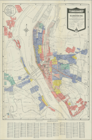 Fall term of this year, our team will be preparing interactive maps that allow the visitor to explore a redlined map of Harrisburg and 1936 and the discriminatory classification system used.