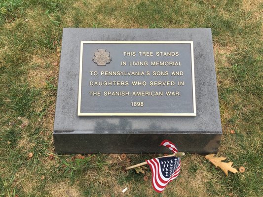 Photo depicts plaque dedicated to soldiers who fought in Spanish American War