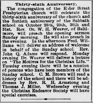 We are inspired by the likes of Maude Coleman (above) who founded the Phylis Wheatley branch of the Y.W.C.A. and fought relentlessly for safe working conditions in predominantly Black workspaces. We are heartened by the words of poets like Gwendolyn Bennet (whose magazine cover is shown in the bottom left) who published in Harrisburg newspapers and wrote ideas of hope into the public consciousness. We are encouraged by the progress that men like abolitionist and church leader John Q. Adams (two newspaper clippings discussing him are shown below) made.