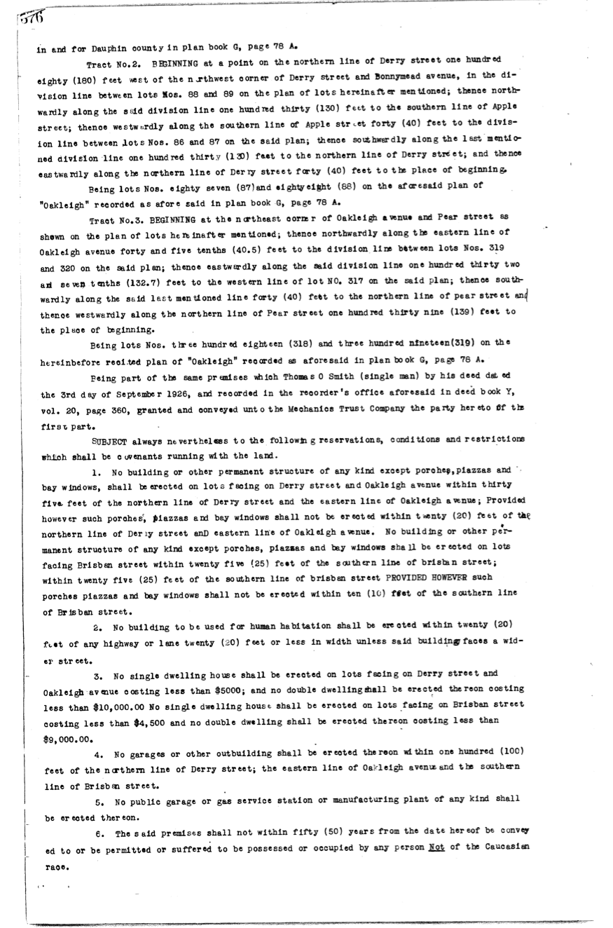 As I worked through my research, it became more complicated. Yes, I had a hypothesis when I began and a general direction to go in, but because of COVID the normal methods of archival research were closed. I couldn’t go and visit an archive, so I had to rely on what I could access over the internet. Through zoom calls with professors and professionals like Dr. Albert Sarvis at Harrisburg University, hours of combing through the Digital Harrisburg online archives, and even more hours spent looking through individual housing covenants on the Dauphin County Recorder of Deeds website, I was able to start building a narrative.