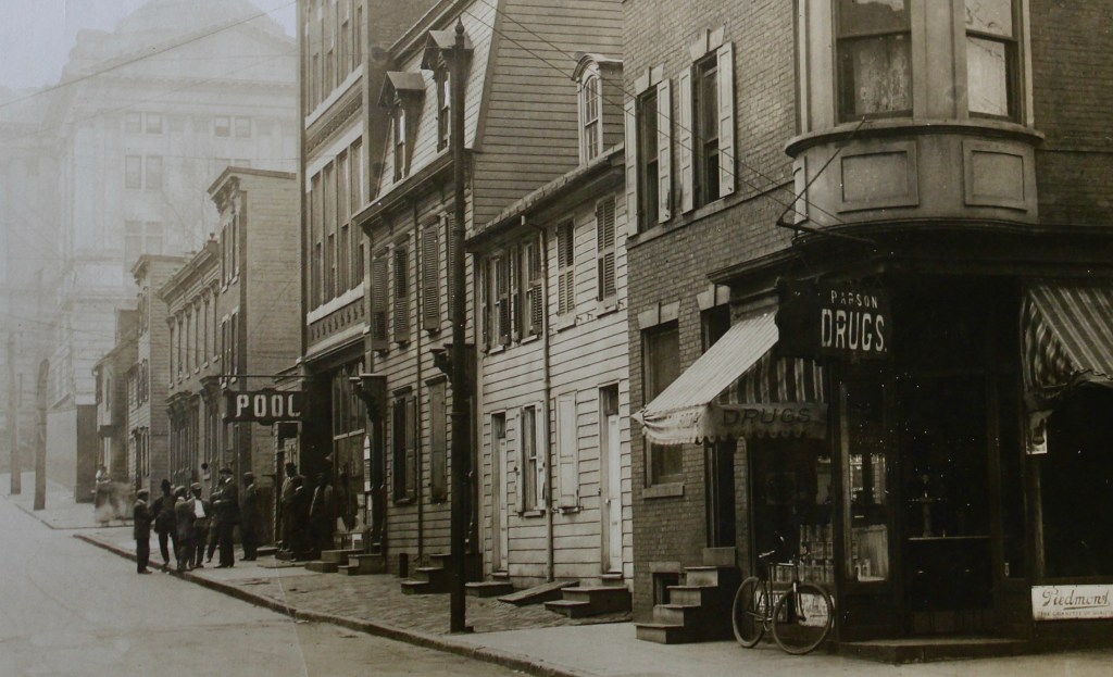 Pool Hall Surrounded by African American Patrons in the Old 8th Ward of Harrisburg. This area of the city was razed in the 1910s to make room for a new Capitol Park. It displaced hundreds of African Americans and destroyed their social support system. (Pennsylvania State Archive RG17)