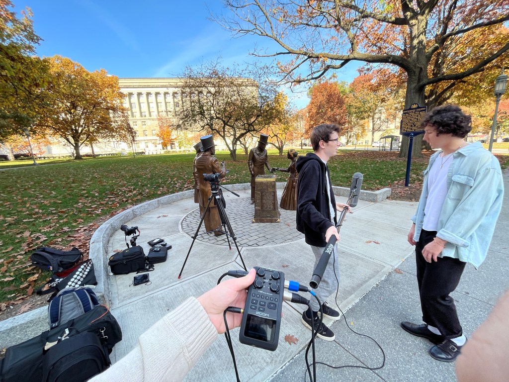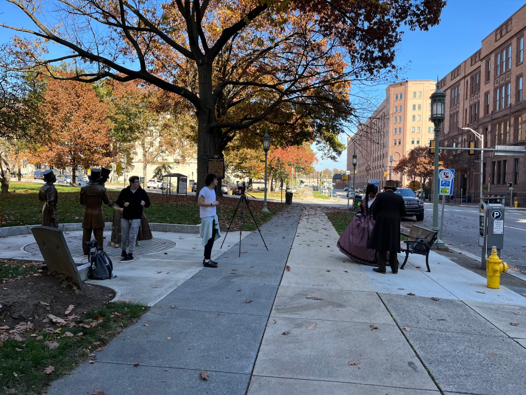 Throughout the past month and a half, I have been working with student fellows Center for Public Humanities at Messiah University and the Past Players, who are affiliated with the McCormick Public Library in Harrisburg, Pennsylvania, to produce a series of videos that will be used for an online, interactable, virtual tour. As of right now, my group and I have filmed four out of eight of the Past Players speaking and acting in full character to our cameras, just as they would on the in-person tour. We plan on filming the rest of the Players this week (11/6 – 11/12) and then working together to edit the footage into videos that look something like this: