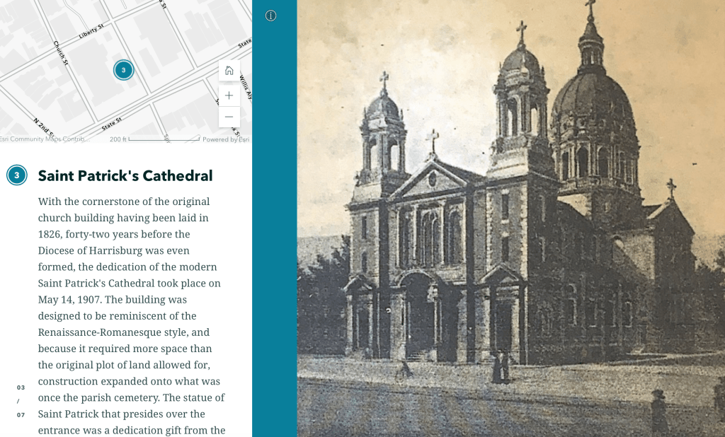 My other project, by contrast, is entirely my own. Using research that I had conducted at the Pennsylvania State Archives and the Historical Society of Dauphin County, places that my classmates and I had the pleasure of visiting as part of our Digital History class, I put together a StoryMap detailing seven of the many church dedications that took place in Harrisburg during the first half of the 20th century. As I perused the dedication service programs and other primary sources, I noticed a trend: determination. Despite their obvious differences, all seven of these churches exhibited immense determination in some way or another, navigating through problems and setbacks of all kinds in order to keep their faiths alive. It’s amazing just how much the history of buildings can say about the people who built them, and that’s what I’ve explored in my project, The Buildings that Built Harrisburg’s Religious Communities.