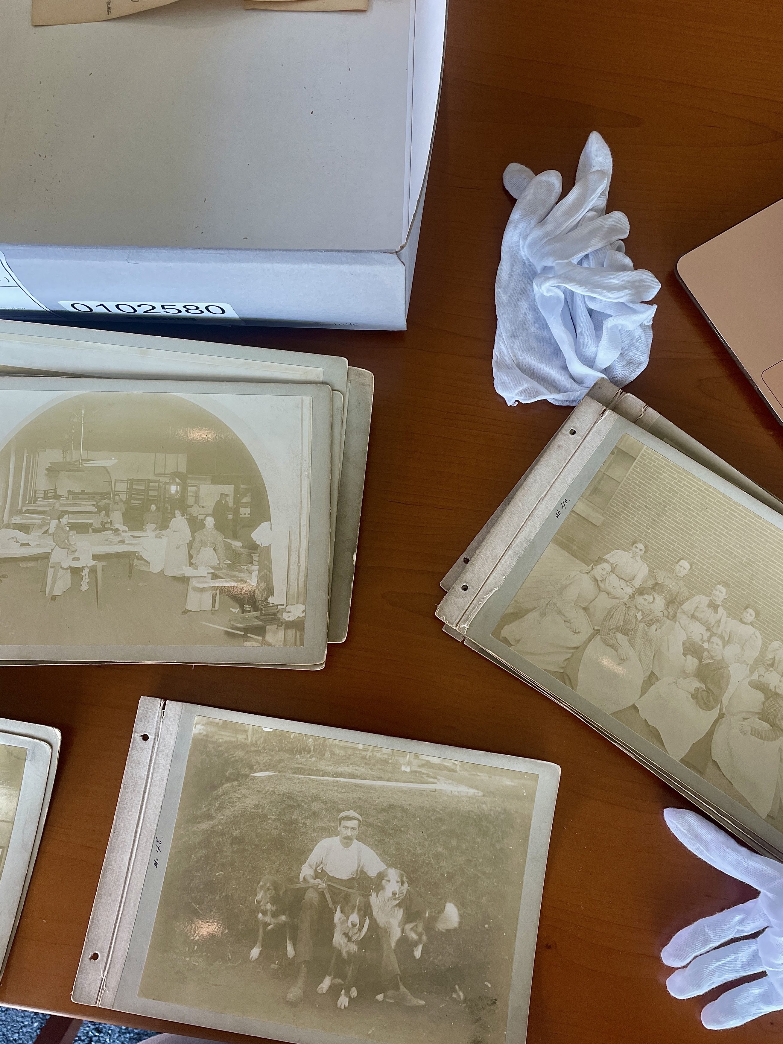 In another box was the Graphic Images collection from 1848-1981, pooling with over fifty photographs. Similarly, its black-and-white images had faded into a yellow hue, but not enough to fade the images of male and female nurses, patients, institution grounds, laundry rooms, sleeping grounds, offices, and kitchens. From there, I selected a few images of nurses, bedrooms, physicians, and patients to digitize with the CZUR Scanner to capture high-quality images.