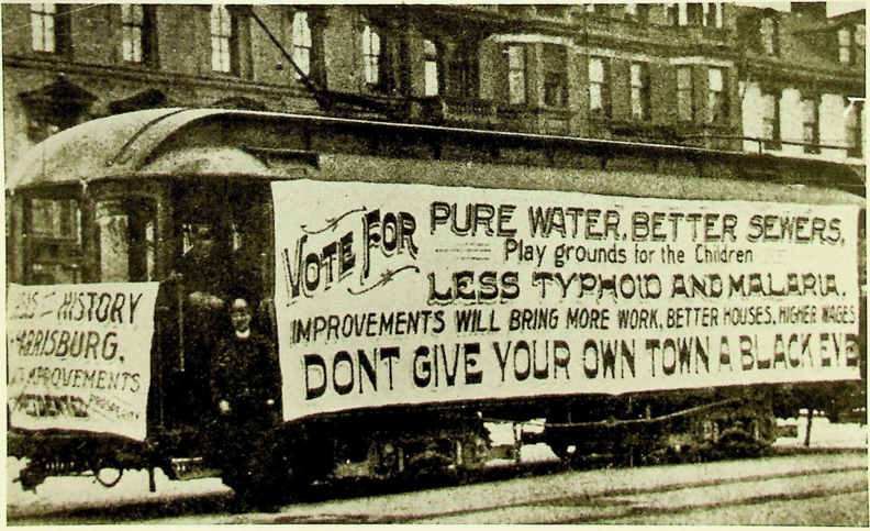 Photo of Trolley Car/Decorated with City Beautiful Signs (courtesy of Historical Society of Dauphin County)