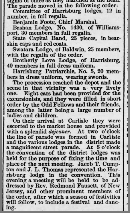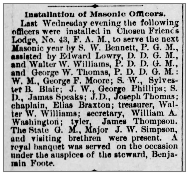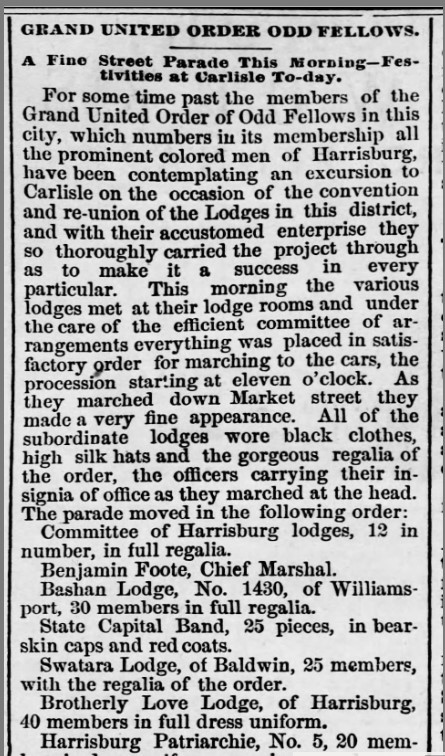 Activism: Dauphin County Equal Rights Club (marshal); Chosen Friends Lodge; Free and Accepted Masons, Number 43 (steward); Grand Order of United Odd Fellows, Lodge Number 896; and Wesley Union A.M.E. Zion Church (trustee).
