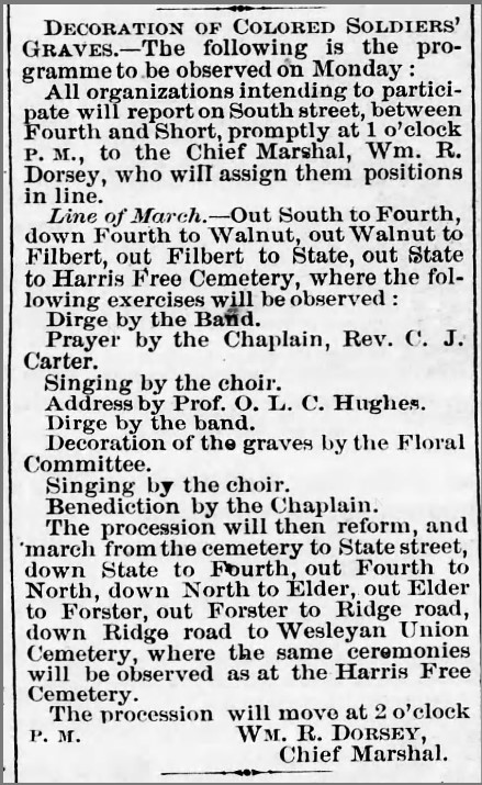 About Me: “The orator, Rev. C.J. Carter, delivered an able address, and read a beautiful poem composed by himself for the occasion. It was an affecting and patriotic tribute to the brave soldiers we revere…” Harrisburg Telegraph, May 31, 1873.