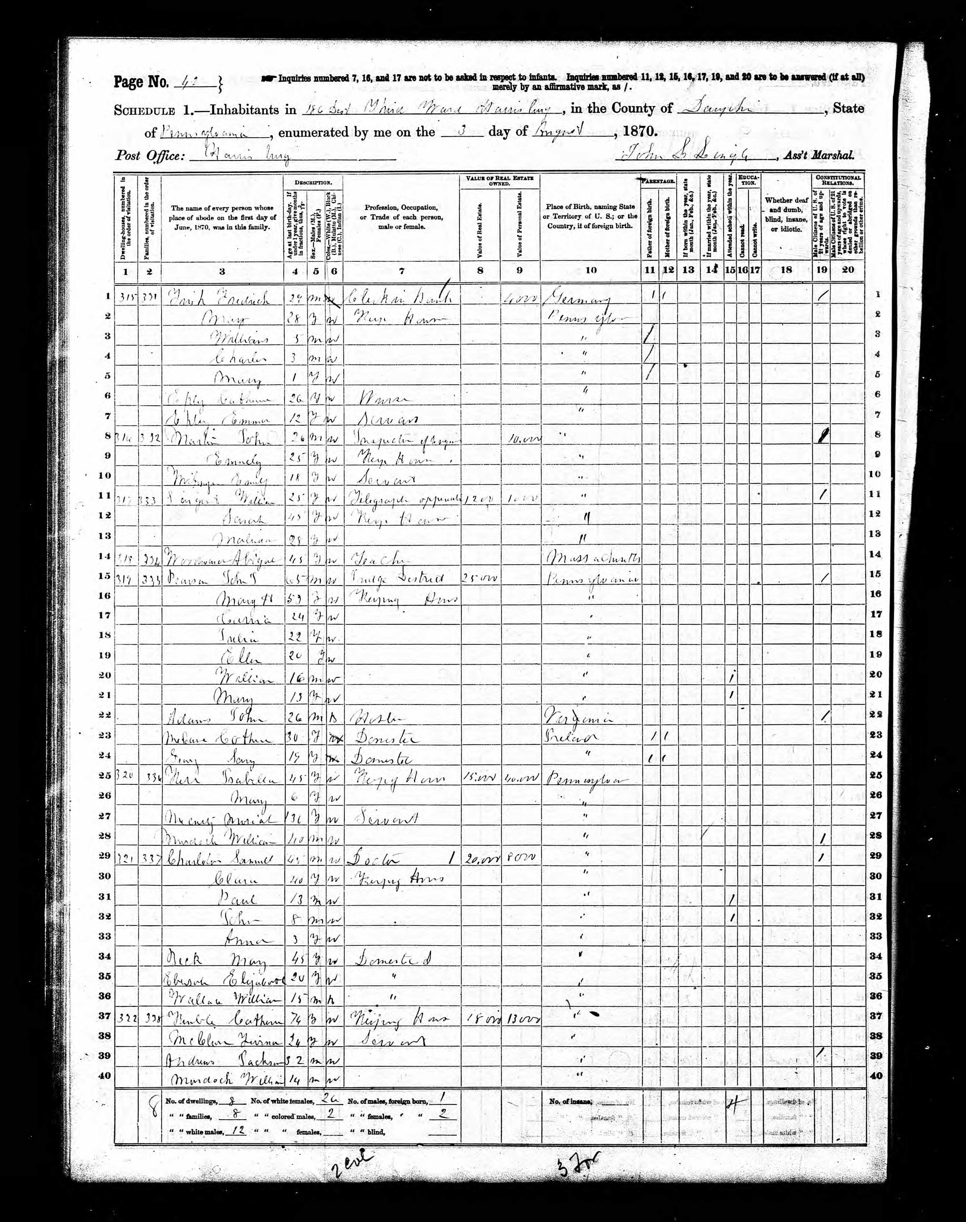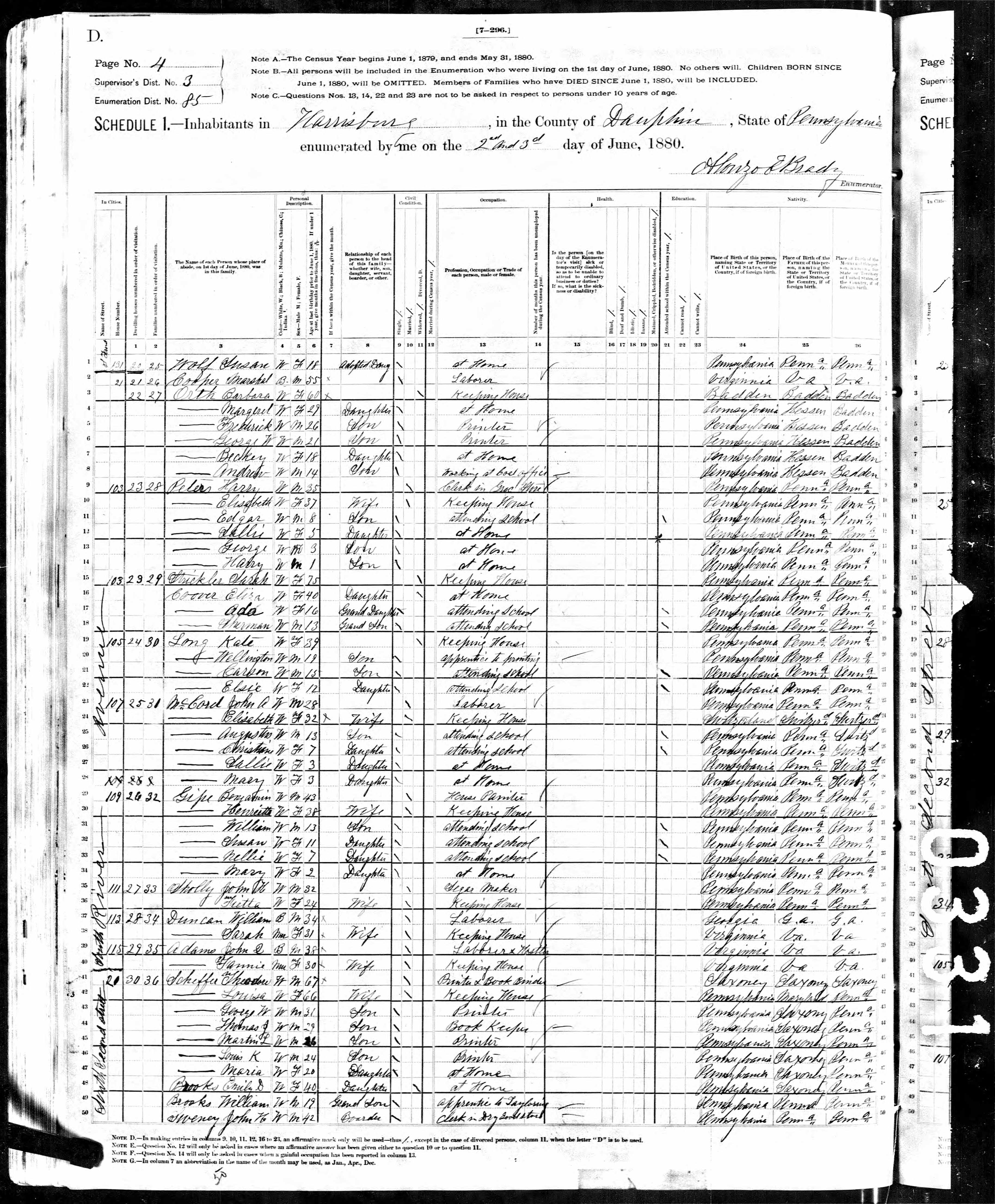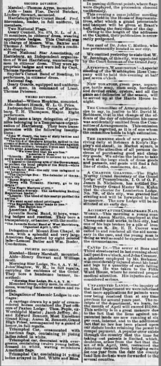 Places of Residence: I resided in several locations near the river just south side of Market Street in Harrisburg: 27 S. Front Street, where I boarded with Judge John Pearson, for whom I served as coachman (1870); 213 S. 2nd Street (1876-1877); 115 and 145 S. River Avenue (1878-1882); and 102 S. Cherry Street (1885-1917).