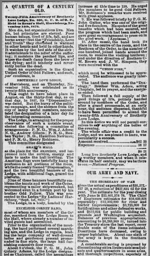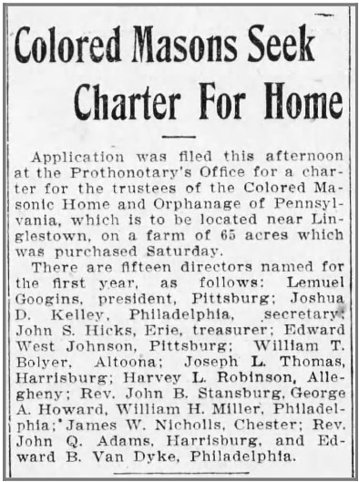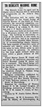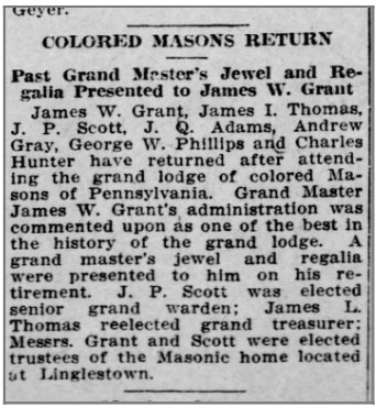 My Contribution: I served as minister at Wesley Union A.M.E. Zion Church and as the Grand Master of the Grand United Order of Odd Fellows at the Brotherly Love Lodge. I started the Prince Hall Masonic Home and Orphanage in Linglestown, PA.