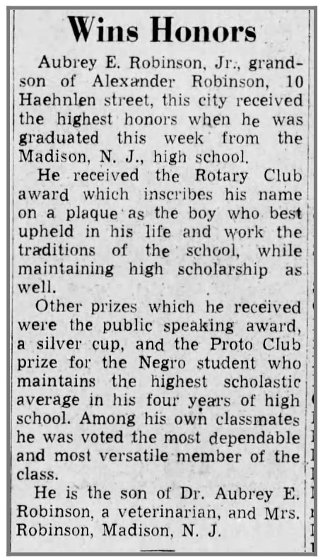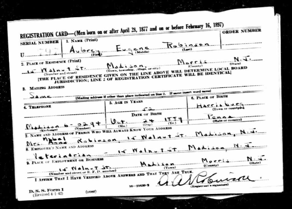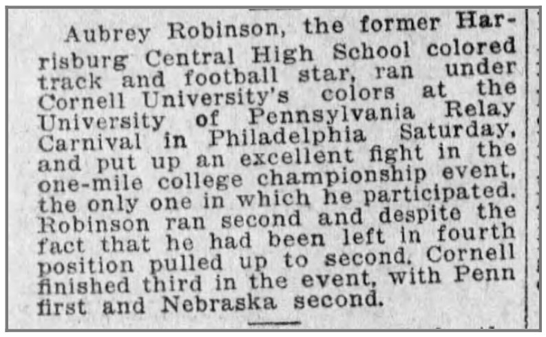 About Me: “Many of you sports followers of the vintage 1912-1913, remember Aubrey Robinson who used to play football for Central High School, and was, at the time, one of the best sprinters in this locality… The Robinson name is being carried along now—by two of his sons—one a member of the Cornell football team, and the other a member of the Big Red Band… the old man is a veterinarian in Madison, NJ.” —Harrisburg Telegraph, December 5, 1941.
