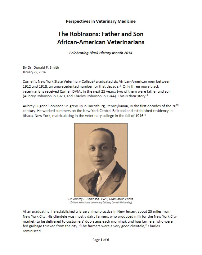 My Legacy: I broke ground as one of the first African Americans to enter Cornell University College of Veterinary Science, and I was recognized by the university in a 2014 publication. I also mentored my two sons along their journeys to Cornell and to successful careers: one became a prominent veterinarian while the other became a Washington, D.C. District Court judge.