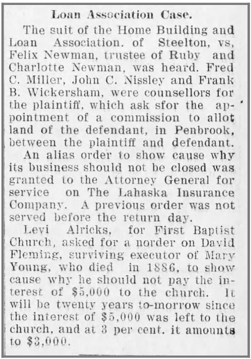 Connection to the Old Eighth Ward: Husband was a member of the election board of the Third precinct of the Eighth Ward; attended Bethel A.M.E. Church and Wesley Union A.M.E. Zion Church
