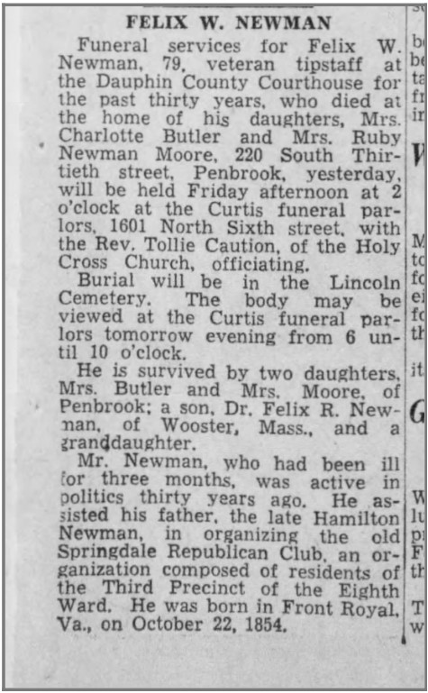 Places of Residence: Front Royal, Warren County, Virginia; Harrisburg, Pennsylvania: 1726 Walnut Street, 266 Walnut Street