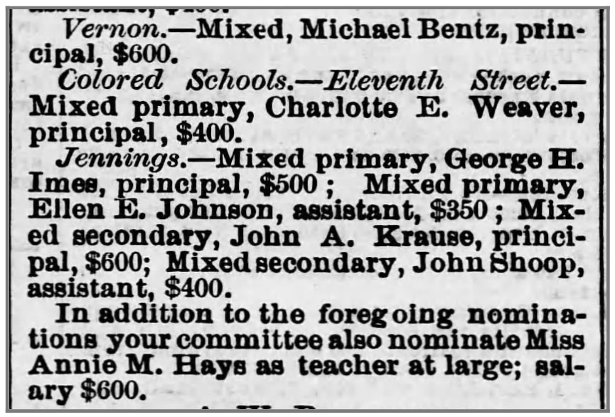 My Contribution: I was a teacher and advocate of public education. Eventually, I became the principal of the Eleventh Street School.