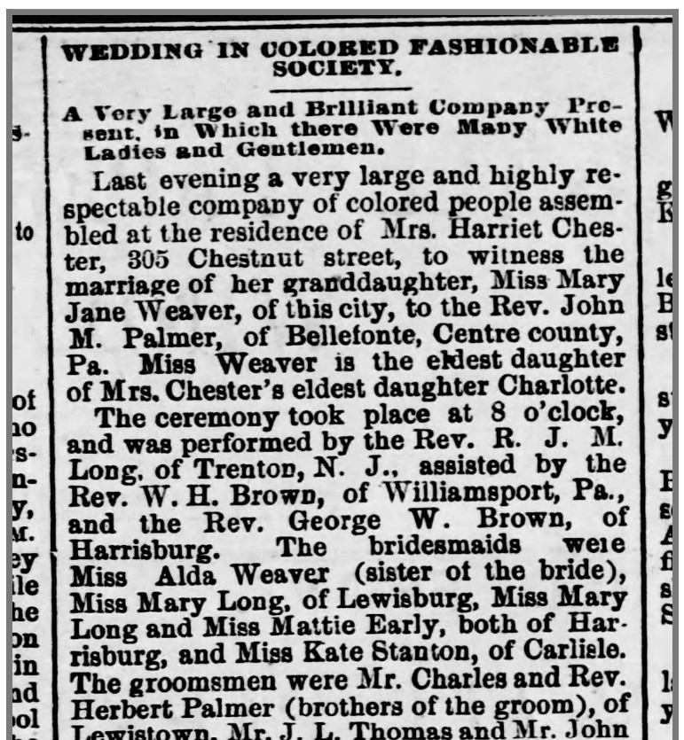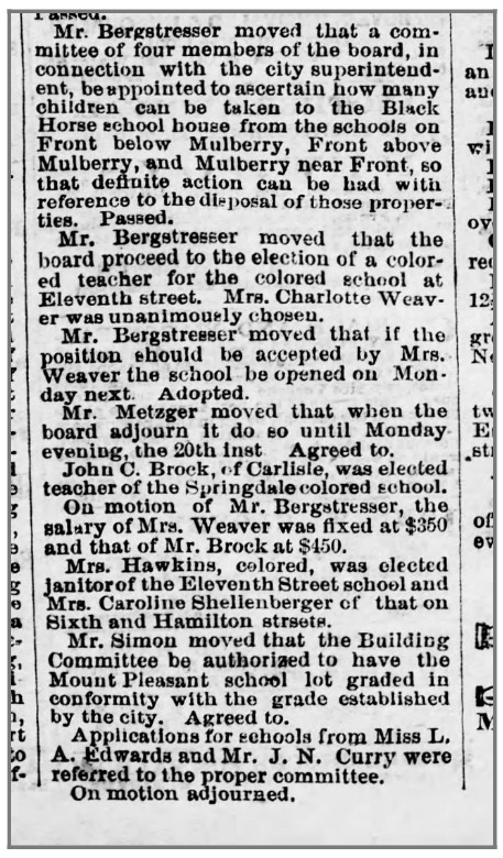 About Me: “Colored Schools.—Eleventh Street.—Mixed primary, Charlotte E. Weaver, principal.” — Harrisburg Telegraph, July 18, 1873.