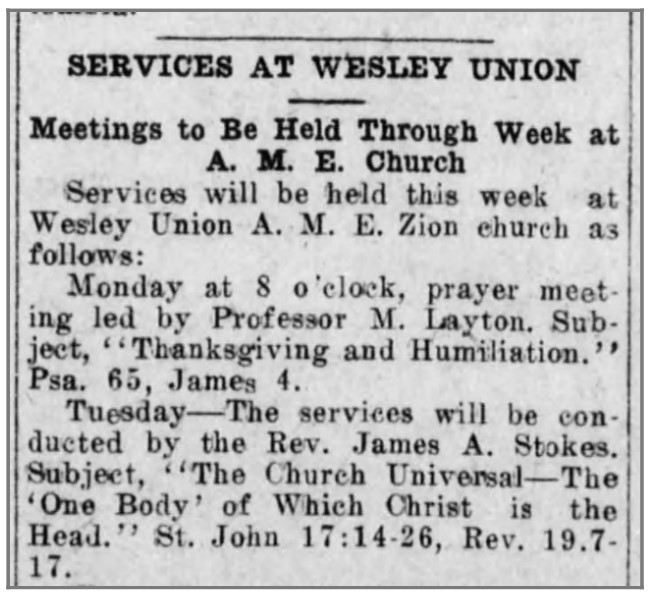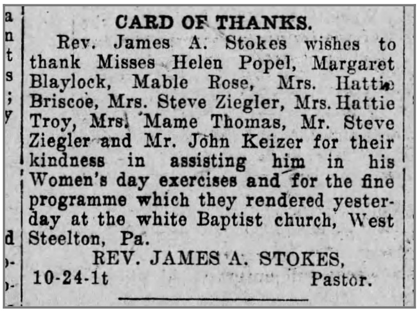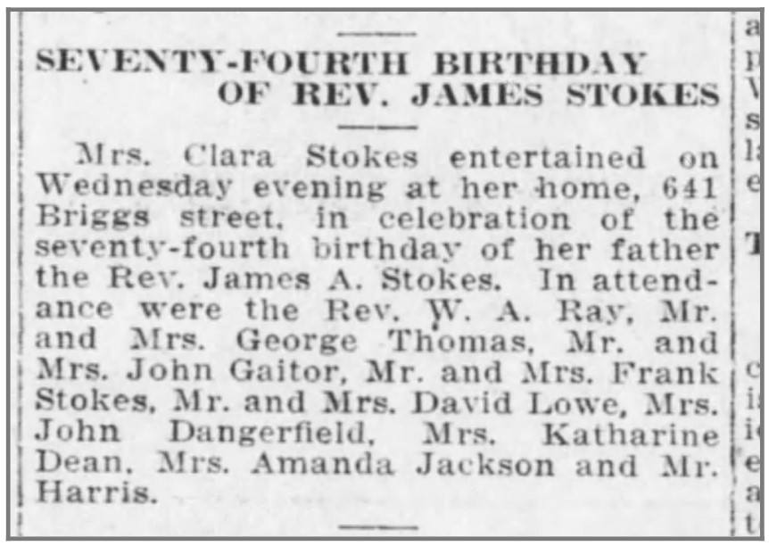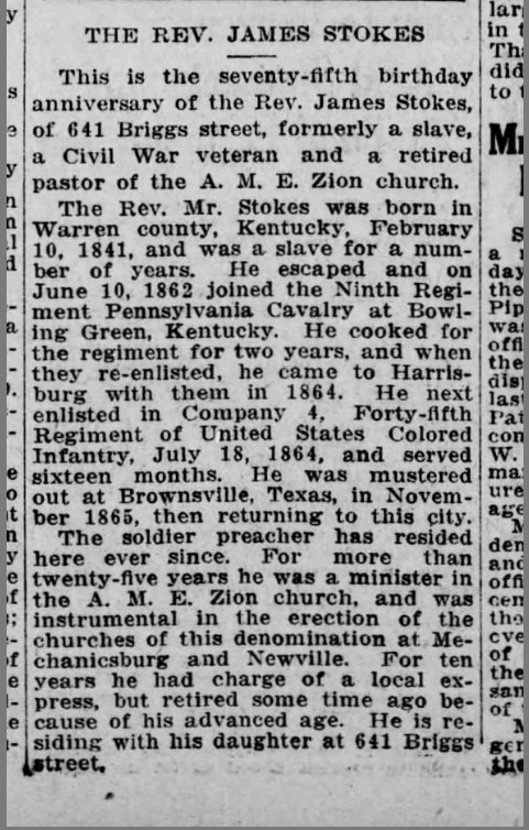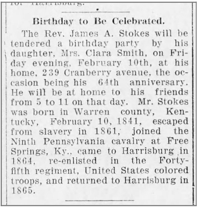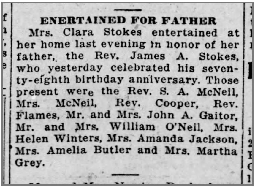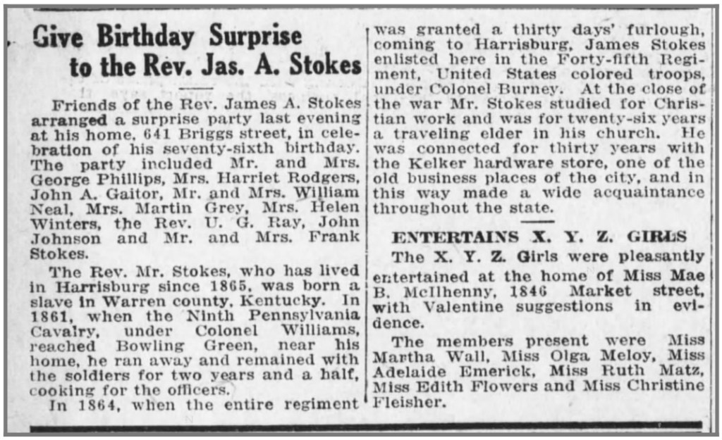 “Rev. James A. Stokes is an earnest, consecrated minister who practices what he preaches. He succeeds in all his charges.” —Valley Spirit, Chambersburg, Pennsylvania, May 26, 1897.