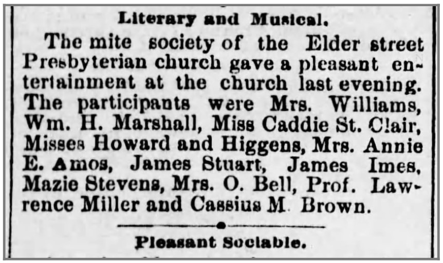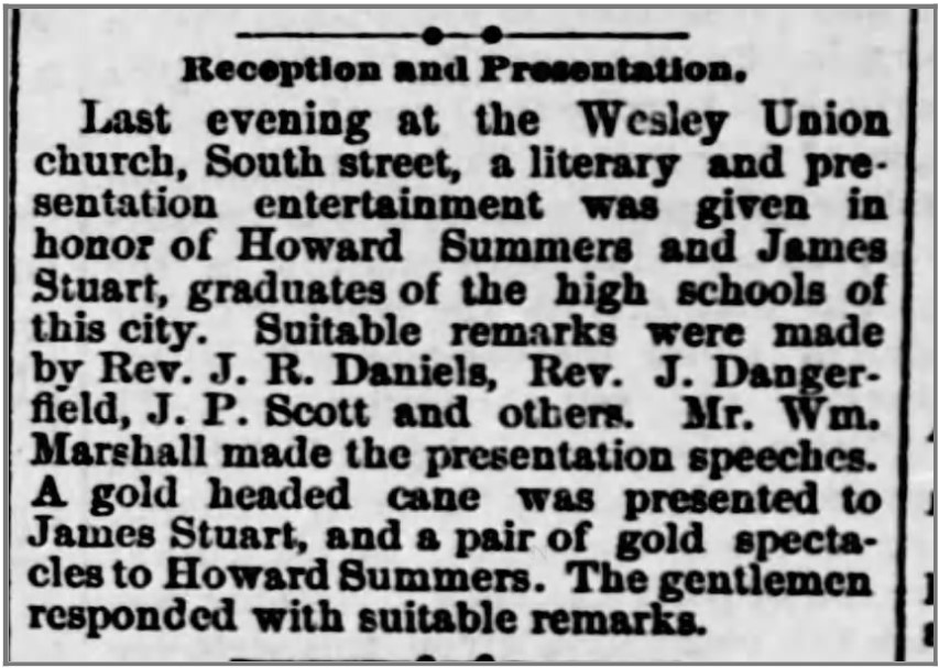 Church Membership: Wesley Union A.M.E. Zion Church (the church of his father); Capital Street Presbyterian Church (mite society and Young People’s Society of Christian Endeavor)