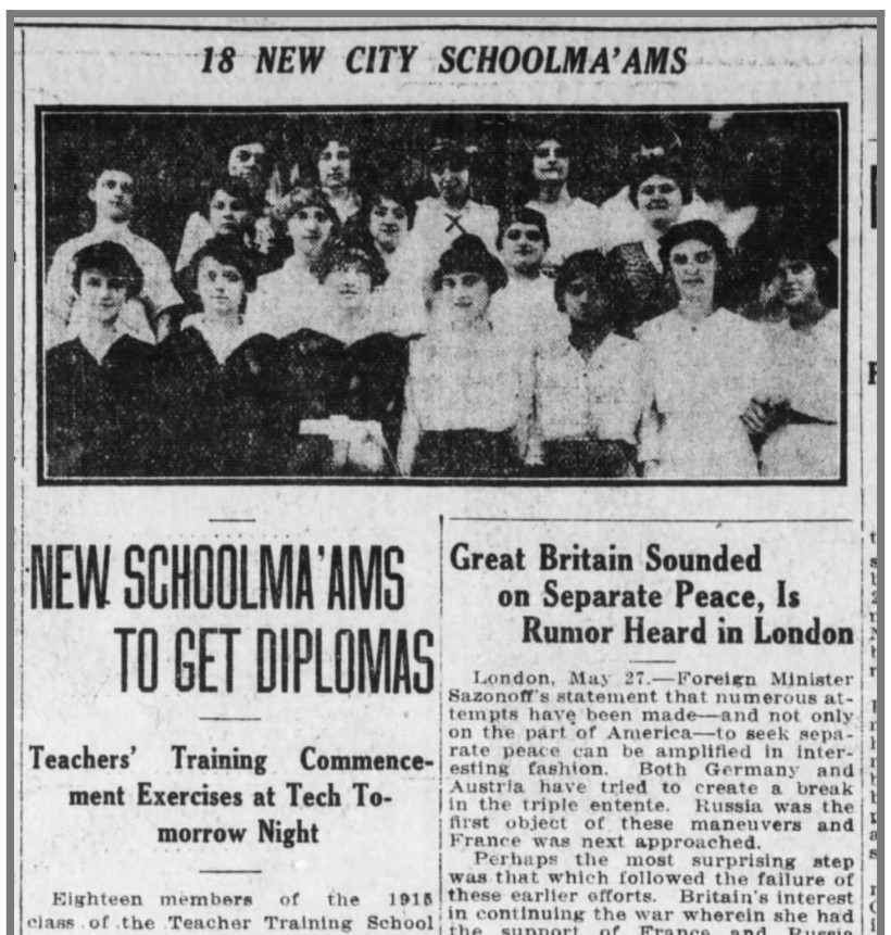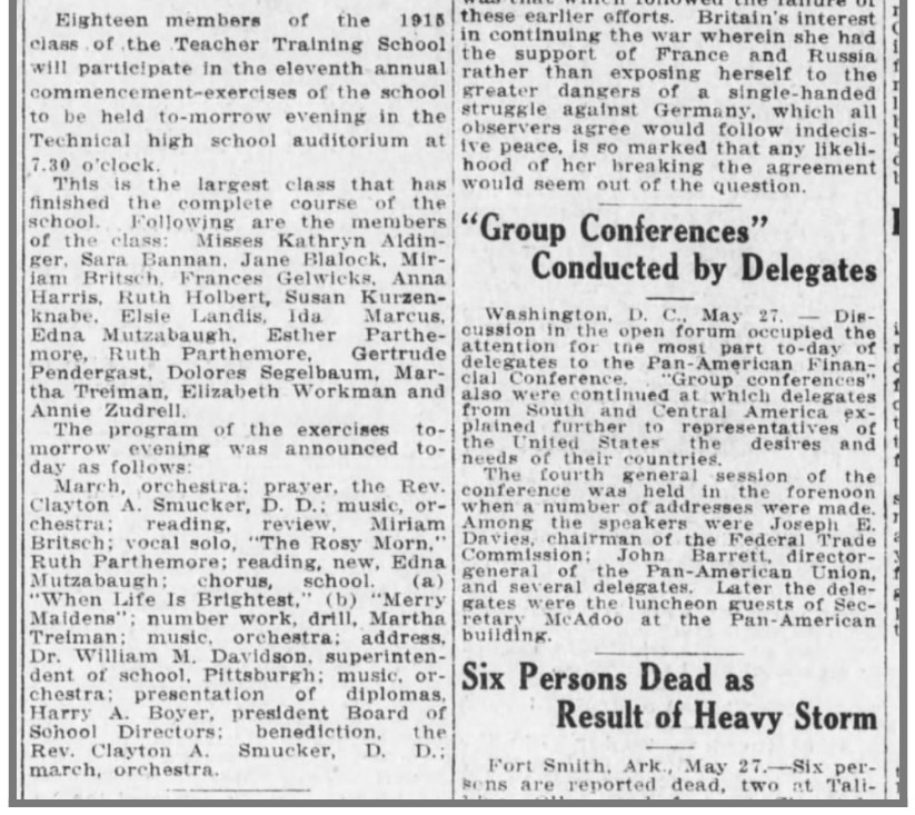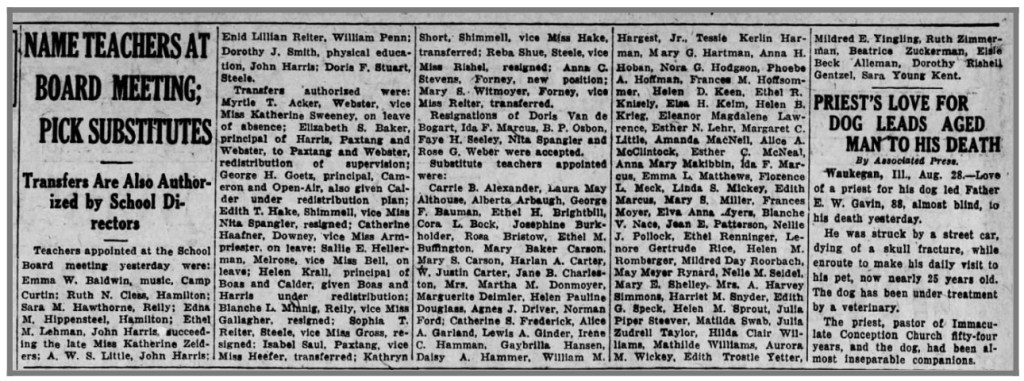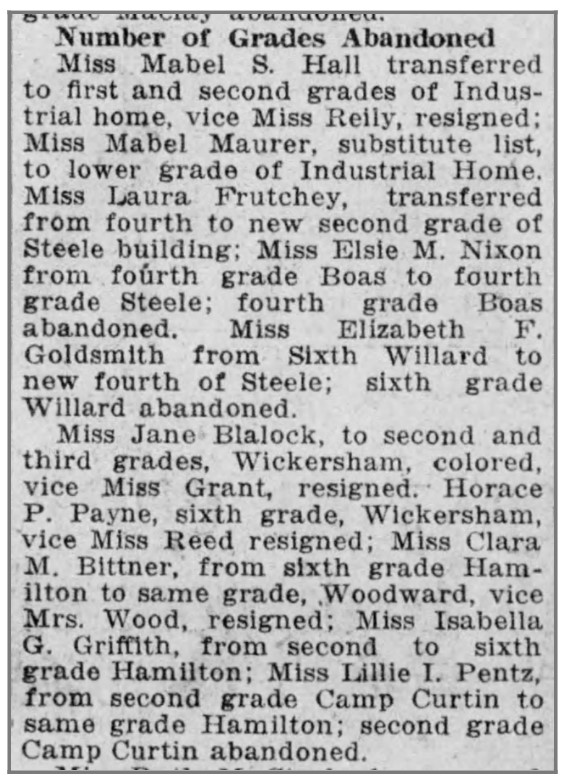 Education: Central High School, Harrisburg. Teacher Training School, Harrisburg (1915).