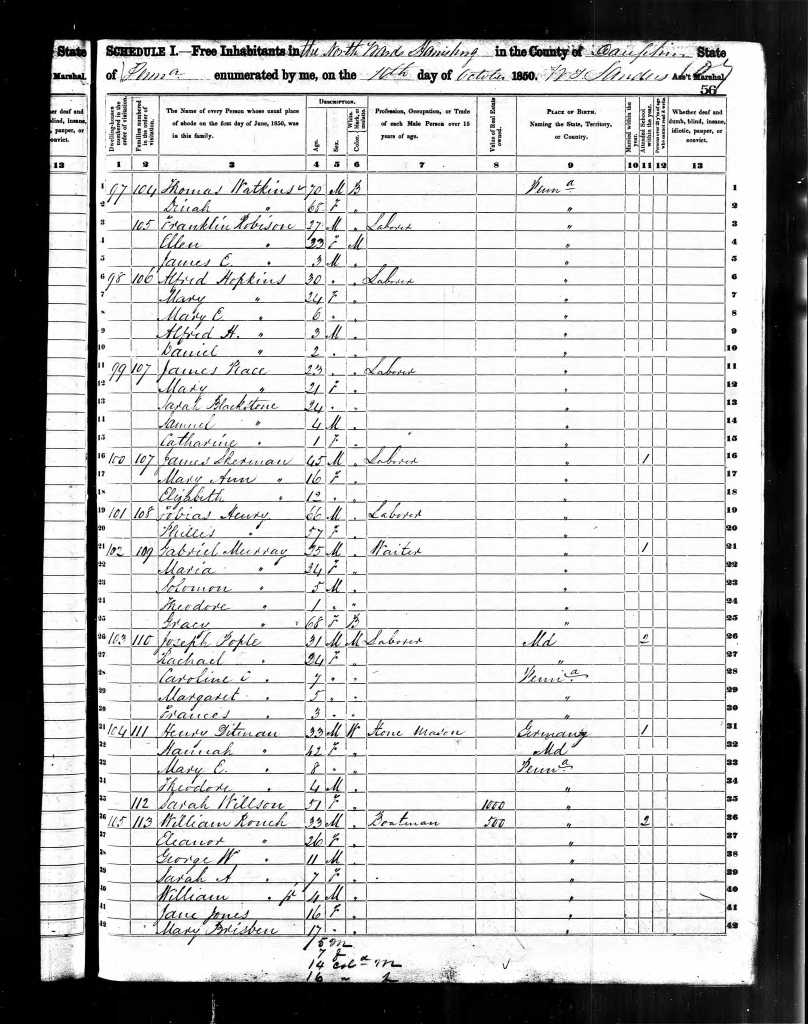 Race: “Colored” (Civil War Draft), “Mualatto” (1850, 1860, and 1870 Federal Censuses), Black (1880 Federal Census)