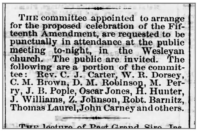 My Legacy: I was a well-known and well-respected resident and political activist in my community for over 40 years and impacted fellow residents through numerous events and meetings. I helped Black residents of the Eighth Ward to gain access to the vote and to become politically active in the years surrounding the passing of the Fifteenth Amendment.
