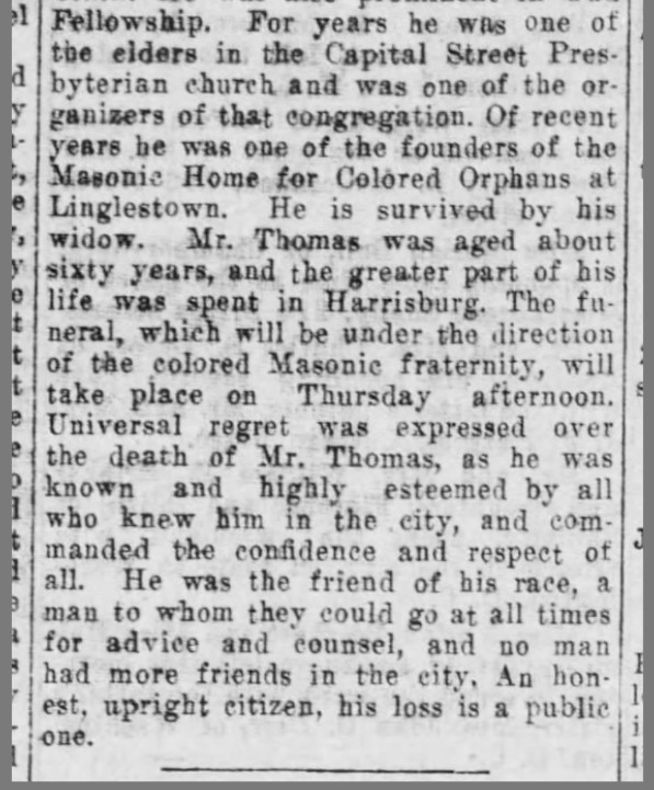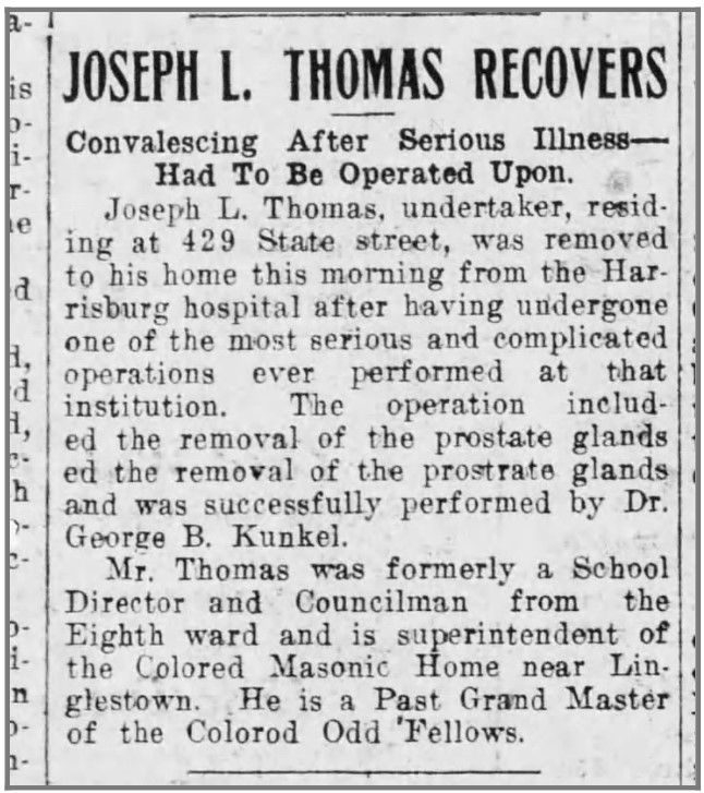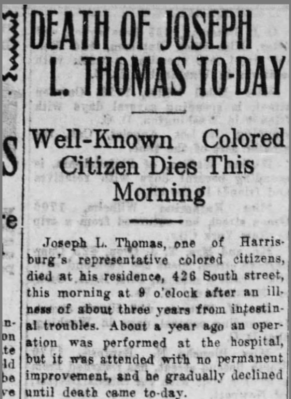 About Me: “The praises of Frederick Douglass in the past and of Booker T. Washington in the present have been sounded again and oft for what they have done in improving human conditions. They deserve all the laudations awarded to them. But do not forget that there are men in every community, less known to fame than they, who, unostensiously, are laboring in the same vineyard, and doing the work the Master has given them to do. Harrisburg has had such workers and one of the numbers is Joseph L. Thomas.”