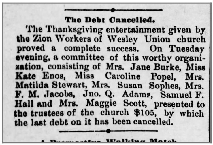Connection to the Old Eighth Ward: Resident and property owner; active member of Wesley Union A.M.E. Zion Church.
