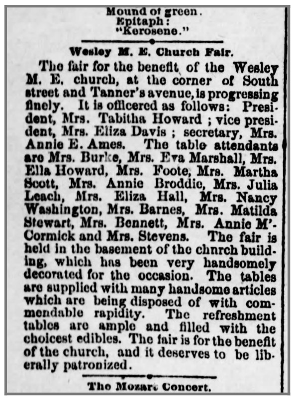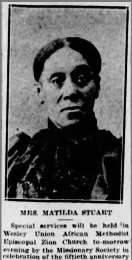 About Me: “Special services will be held in Wesley Union African Methodist Episcopal Zion Church tomorrow evening by the Missionary Society in celebration of the fiftieth anniversary of Mrs. Matilda Stuart as an active worker in the society. She has been president of the society for forty-five consecutive years.” — Harrisburg Telegraph, March 27, 1920.