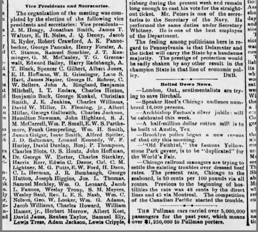 Connection to the Old Eighth Ward: Resided several blocks north of Eighth Ward; knew Eighth Warders.