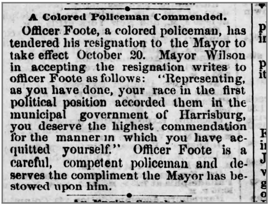 My Legacy: As a patrolman, I protected residents so they could live peaceably. I encouraged many citizens to use their Fifteenth Amendment rights to ensure voice and representation in voting. These actions worked towards a better life for citizens in Harrisburg.