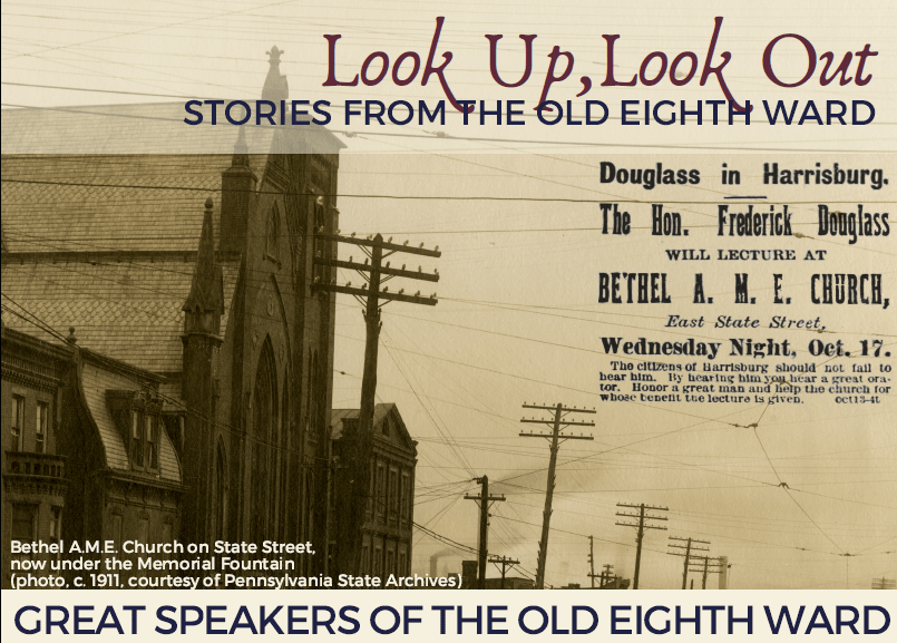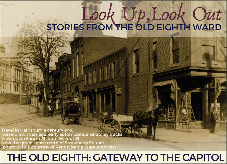 Look Up, Look Out is a product of the Commonwealth Monument Project. The project organizer is the IIPT Harrisburg Peace Promenade, a project of the Foundation for Enhancing Communities, fiscal sponsor. Visit the landing page for more information about the project. Click on the images of the posters below to read stories about the Old Eighth Ward.