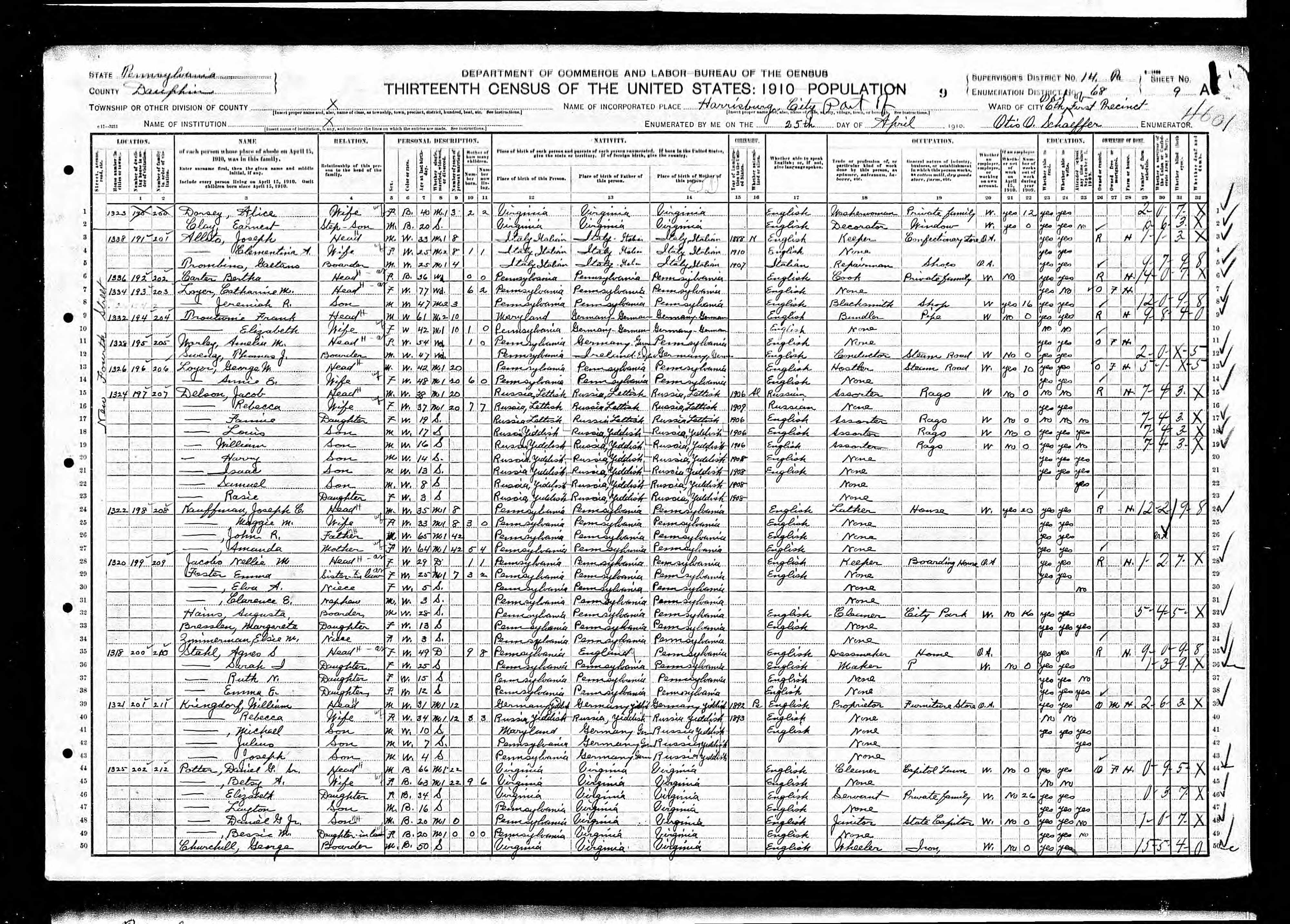 Occupations: Harrisburg Car Shop. Day Laborer. Custodian, cleaner, and caretaker on Capitol Hill for over 34 years. Tipstaff in Dauphin County Court.