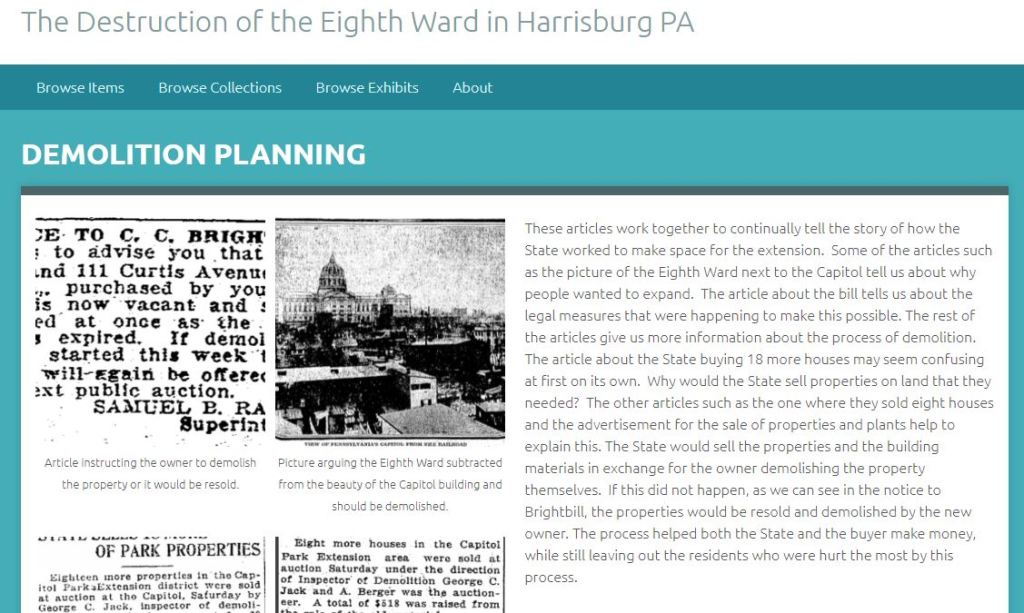 The Cost of a Beautiful City: Harrisburg’s Old Eighth Ward (Omeka Exhibit)