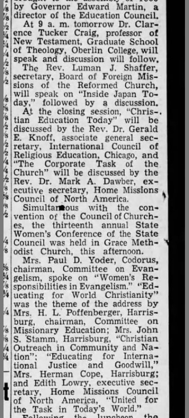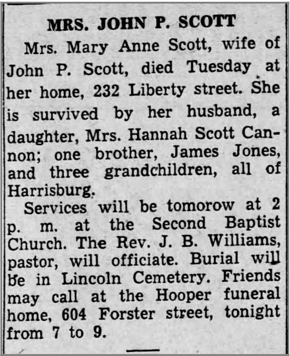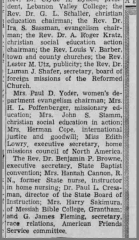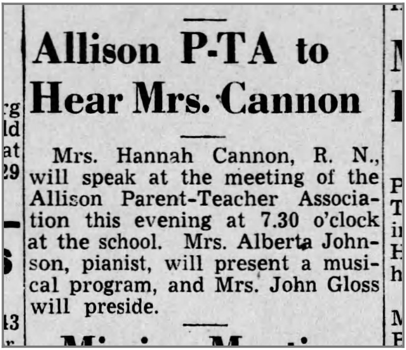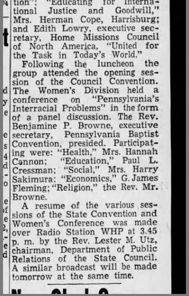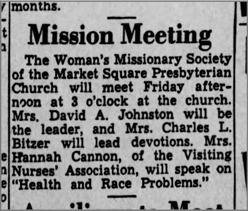 “Mrs. Hannah Cannon of the Visiting Nurses’ Association, will speak on ‘Health and Race Problems.'” Harrisburg Telegraph, September 4, 1946.