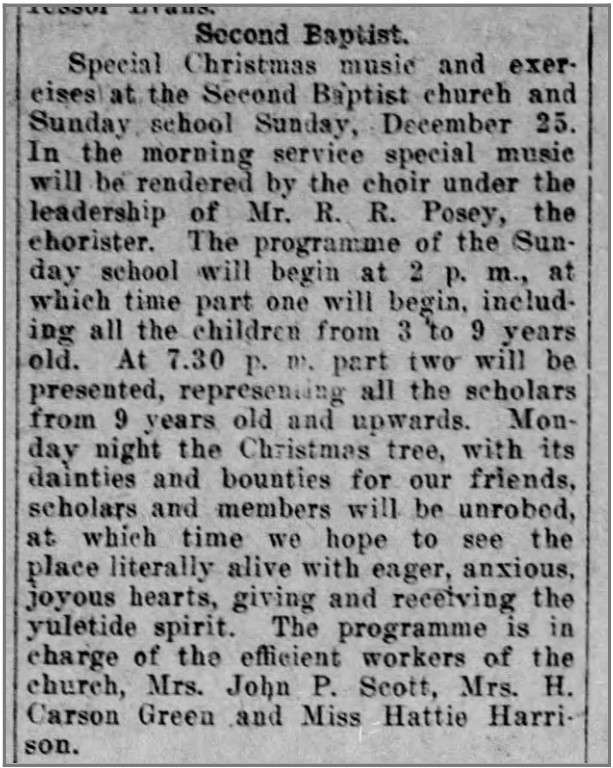 Activism: Singer at Second Baptist Church; Unity Social Club.