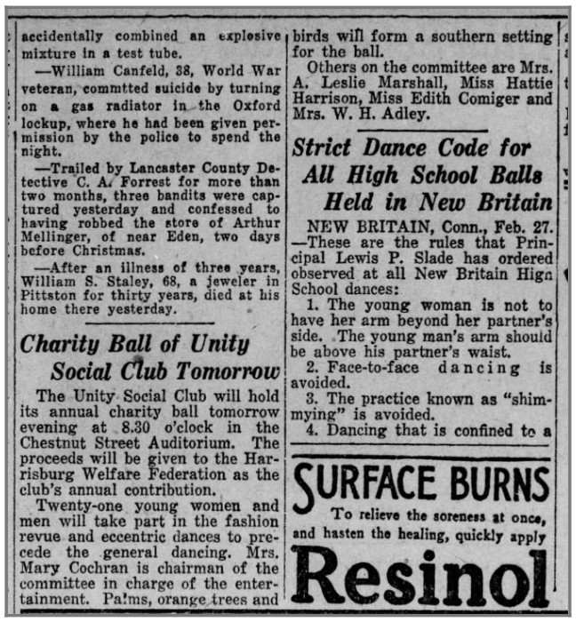 Education: Harrisburg High School, 1907; Teacher Training School.