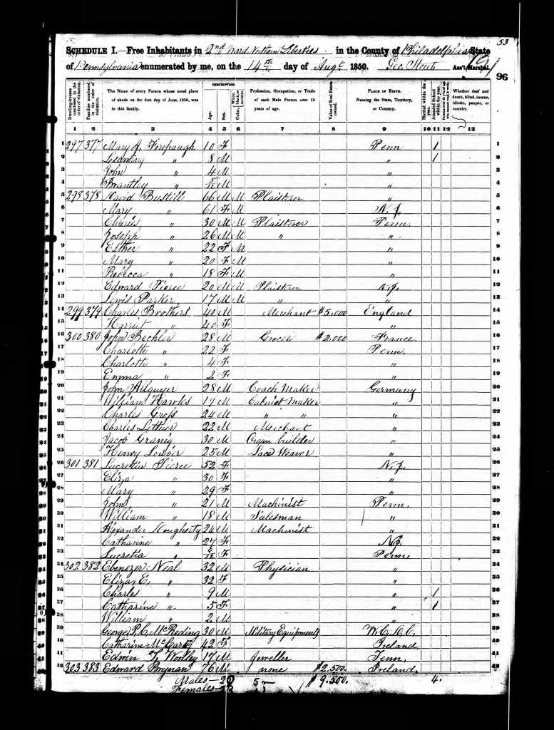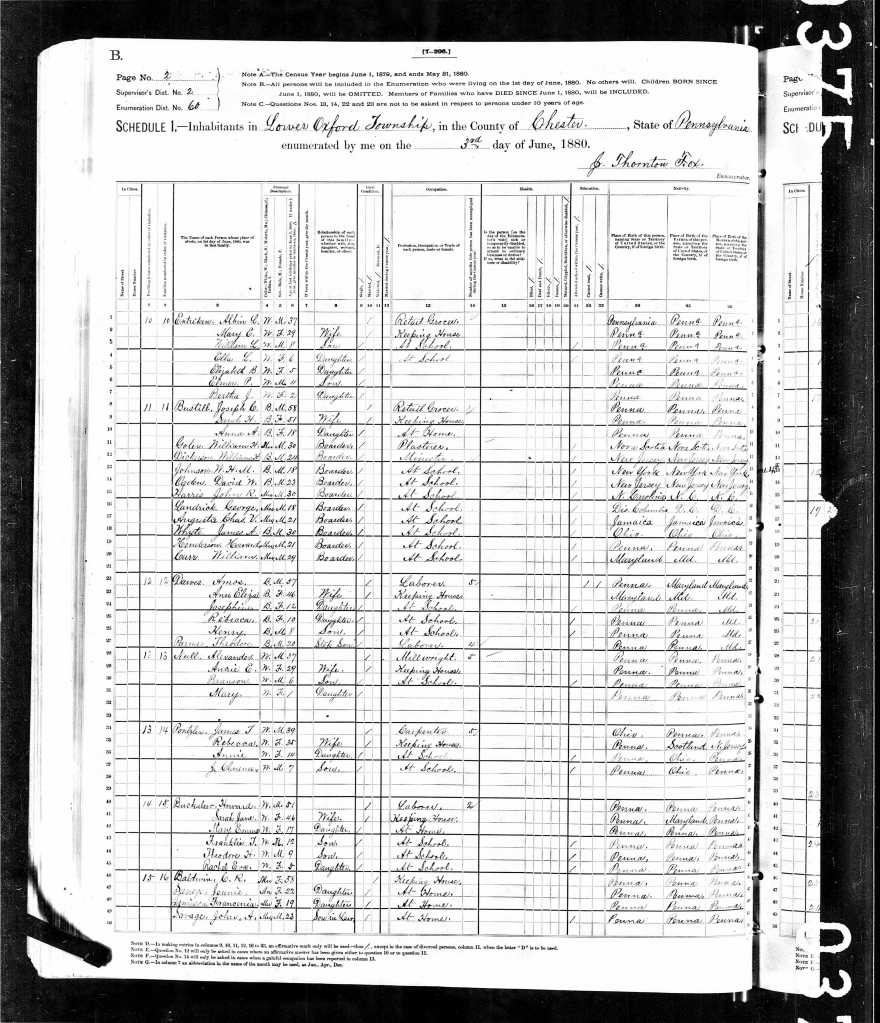 Race: “Mulatto” (1850 and 1970 Federal Censuses), Black (1860 and 1880 Federal Censuses), English, African, and Native-American heritage (according to family history and Harrisburg Telegraph, August 23, 1895).