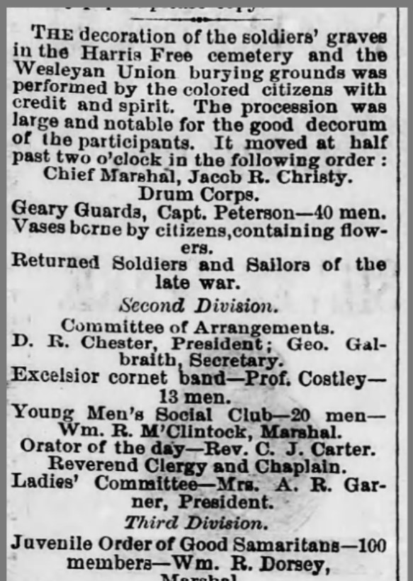 Occupations: Served in the Civil War from 1864-1865 in Company D of the 32nd Colored Troops Division. Carpenter. Musician.