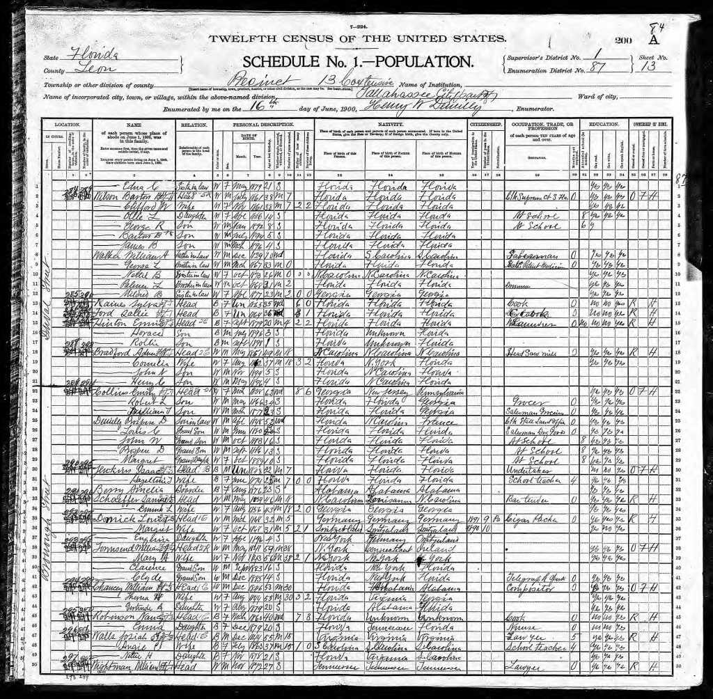 Race: Black (1900 Federal Census), “Mulatto” (1863 Enlistment Records)
