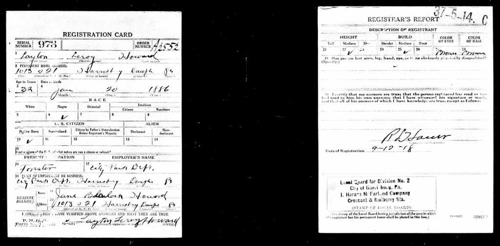 My Contribution: I played a major role in the improvement of Harrisburg’s green landscape as well as the city’s Black community. I served as a forester for the City Park Department. My father and I published a directory in Harrisburg in 1910 featuring Black businesses and prominent citizens in Pennsylvania. I served my country by registering for military service for World War I in September 1918.