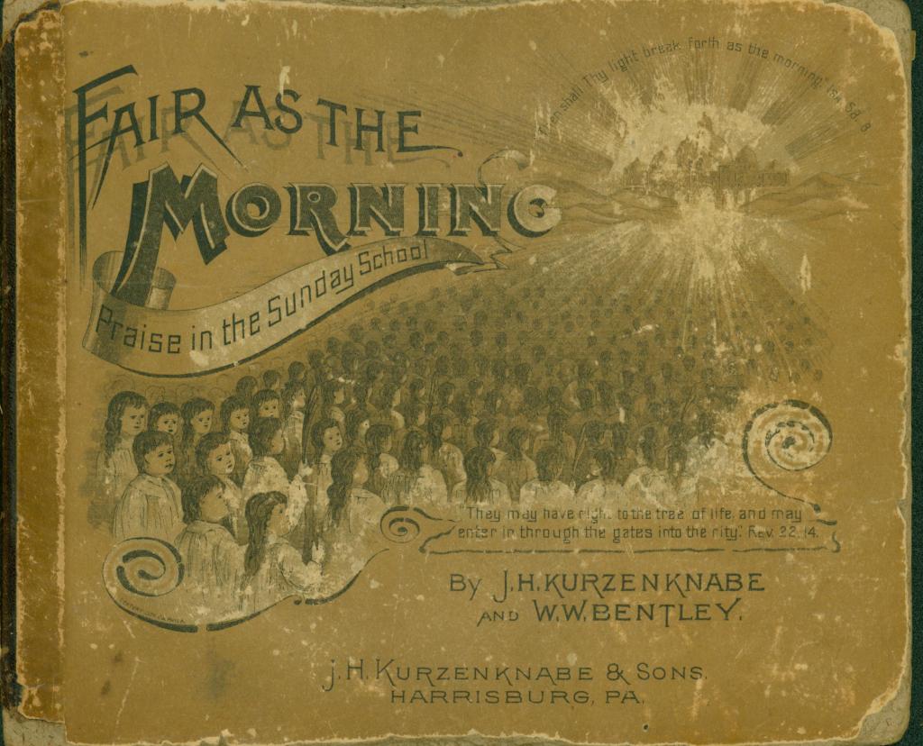 While he did not live in the Old Eighth Ward, it is also worth noting that a popular hymn-writer, piano and music teacher, and publisher of hymnals, J. H. Kurtzenknabe, an orphaned immigrant from Germany, operated his printing business, Kurtzenknabe Printing for a time at the corner of Short and South Streets. (This corner was the famed “Frisby Battis Corner” that featured prominently in Old Eighth Republican politics.) Kurtzenknabe was most famous for his Sunday School hymnals, many of which were printed in the Old Eighth Ward. The image on the left is a copy of J. H. Kurzenknabe’s Fair as the Morning published in Harrisburg.