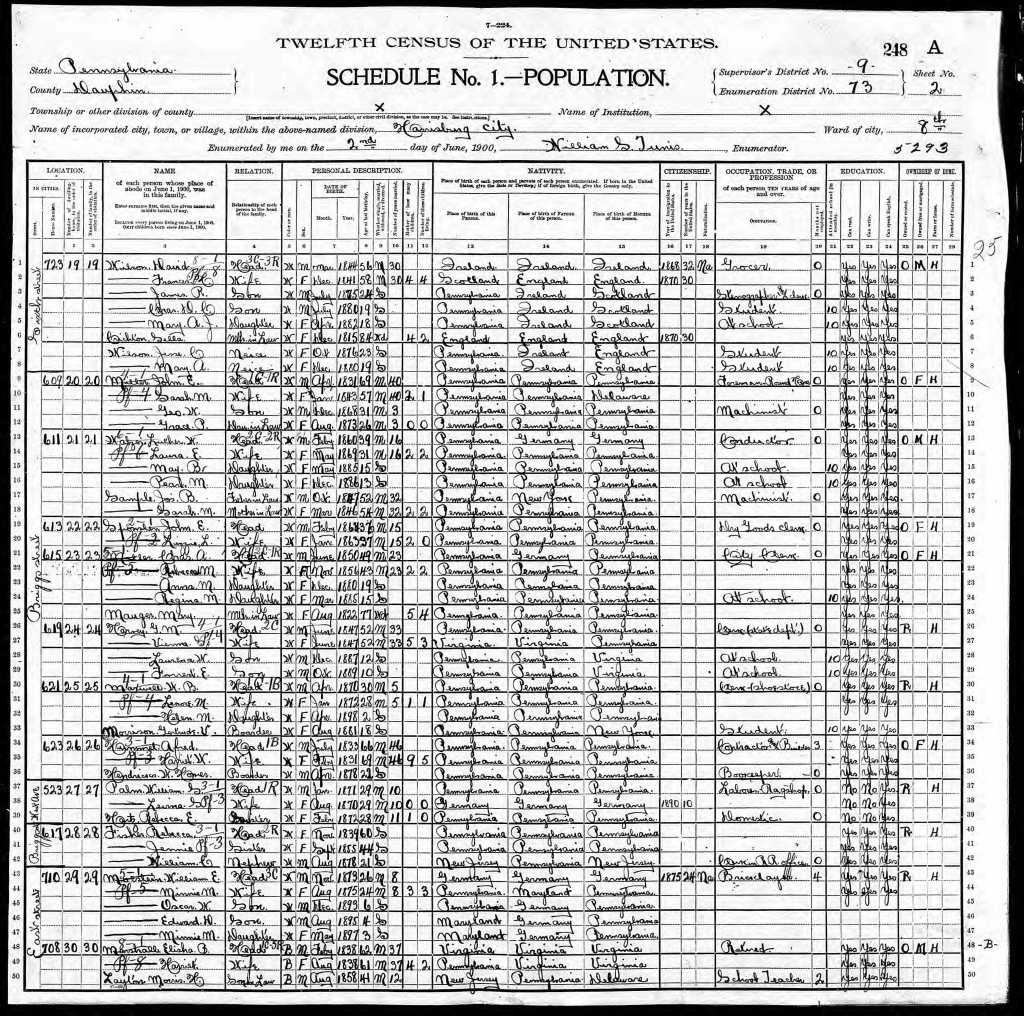 Places of Residence: Philadelphia, Pennsylvania: Ward 8, District 22; 805 Locust St; Harrisburg, Pennsylvania: 512 Briggs Street, 708 East Street, and 930 N. 6th Street.