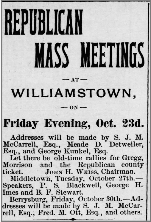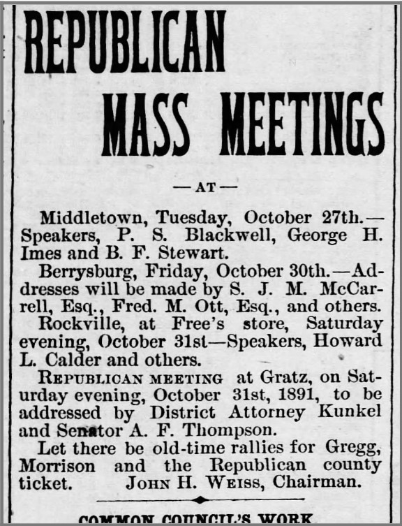 Occupations: Printer. Newspaper editor, Steelton press. Grocer. Salesman. Steelton Third Ward Republican Club. Steelton borough councilman. Laborer. Steelton stone quarry.