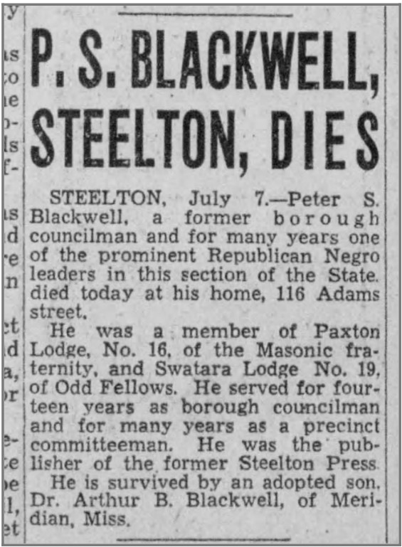 Connection to the Old Eighth Ward: Actively involved in Steelton’s civic life and printed an influential local newspaper read by African Americans of Harrisburg and Steelton.