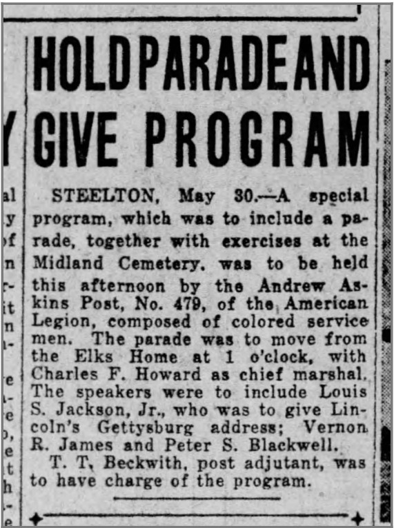 Activism: Paxton Lodge, No. 16, Masons; Swatara Lodge, No. 19, Odd Fellows; Steelton Cyclones baseball team (secretary and manager); Afro-American Republican League of Pennsylvania (president); organized and chaired committee to welcome home Black men of Steelton after World War I; Steelton Third War Republican Club; co-founded Hygienic School, Steelton.