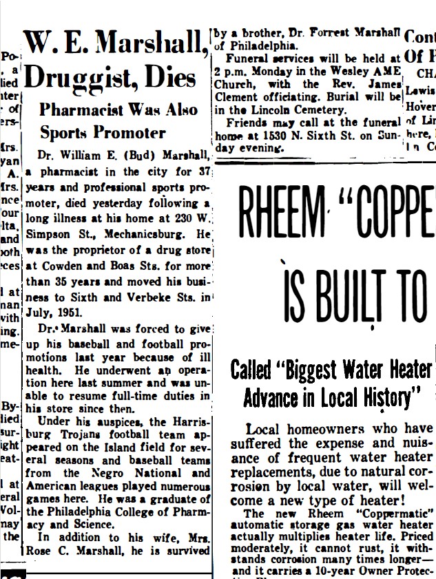My Legacy: My pharmacy was long running and was a staple of the Harrisburg community for more than two generations. Segregation notwithstanding, my support and promotion of Black sports teams fostered high-level competition among athletic teams and provided entertainment for the city.