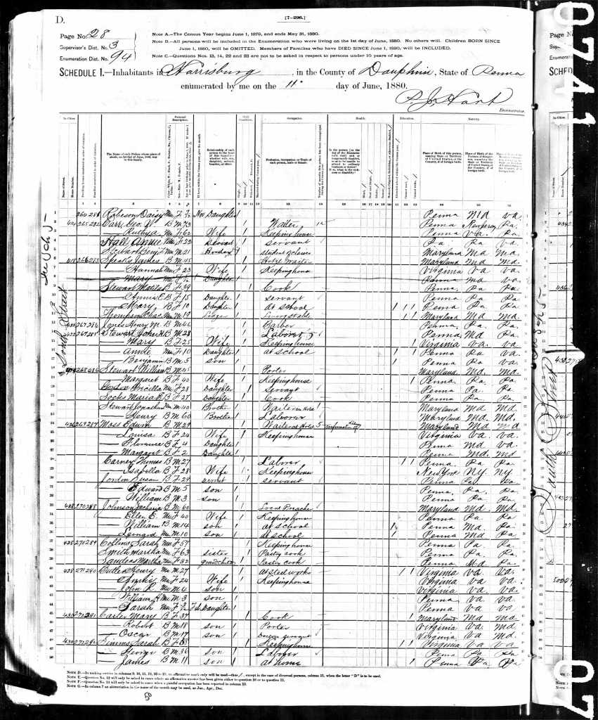 Full Name: Zachariah Johnson • Birth Date: January 1820 • Death Date: after June 1900 • Place of Birth: Maryland • Sex: Male • Race: “Mulatto” (1870 Federal Census) and Black (1880 and 1900 Federal Censuses) • Places of Residence: 428 South Street, Harrisburg (owned from ca. 1867-1900). • Connection to the Old Eighth Ward: Resident and property owner on South Street. • Family Members: Wife: Ellen E. Scott Johnson, m. April 5, 1855. Children: William B. Johnson, Leonard Z. Johnson. • Education: Could read and write according to the federal census. • Occupations: White- washer. Laborer. Preacher. Minister. Musician. Music Teacher. • Church Membership: Bethel A.M.E. Zion Church. • Activism: Involved in organizations promoting political rights of African Americans: Negro National Convention; Equal Rights Club of Dauphin County (president); Fifteenth Amendment Celebration parade (aid); and Decoration Day Committee. • Connections: Leonard Z. Johnson, O.L.C. Hughes, Joseph B. Popel, David R. Chester, Cassius M. Brown, T. Morris Chester, William Howard Day, William R. Dorsey, George Galbraith, Charles J. Carter, John Q. Adams, Benjamin Foote, and Matilda Stewart (neighbor).